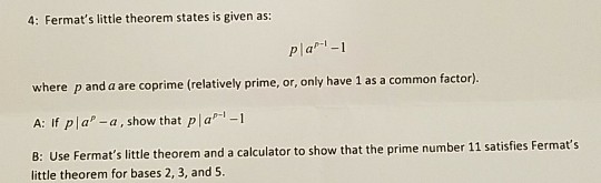 Solved 4 Fermat S Little Theorem States Is Given As Where Chegg Com